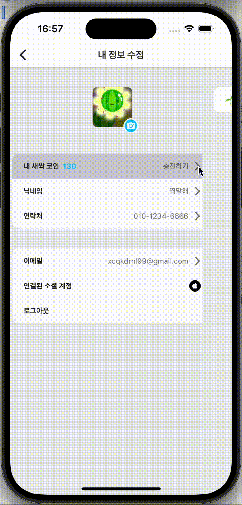 사실 이 뷰 리스트 첫 번째 섹션에 있는 현재 코인 개수는 고정 값이었다.