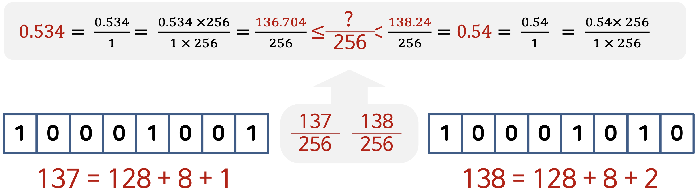 💡 ⇒ 갱신된 Interval 조건에 따라 비트를 바로 출력하고 구간을 2배로 확대함