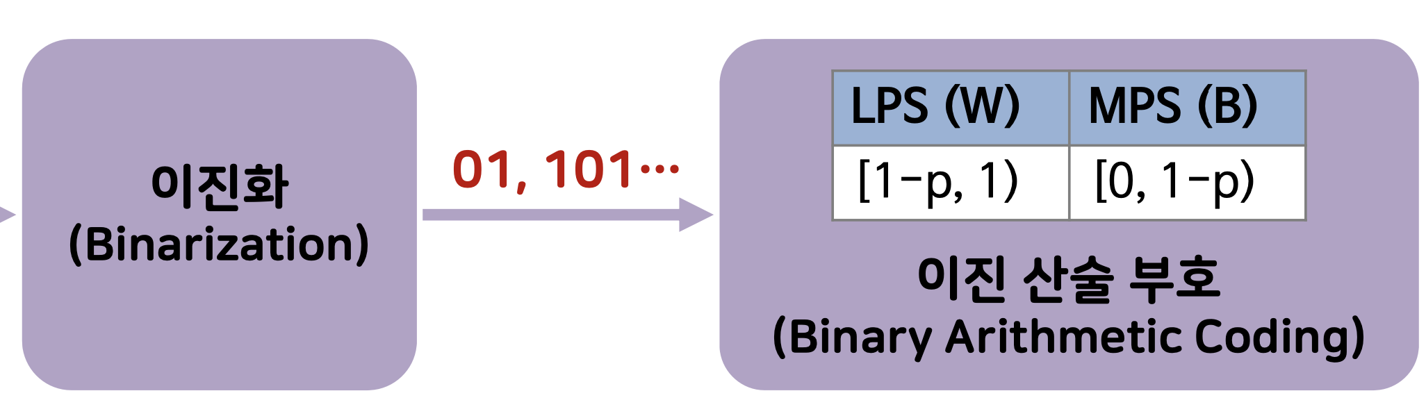 ⇒ 압축분야에서 이진 산술 부호과정은 변경하지 않고, 이진화 과정만 설계 구현하여 압축할 수 있다.