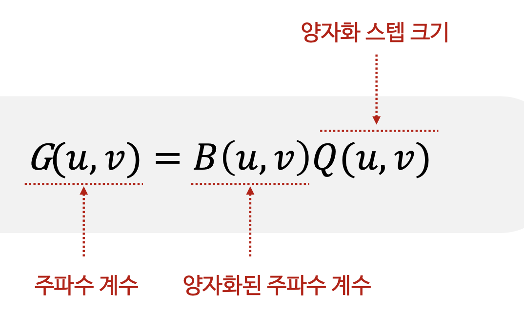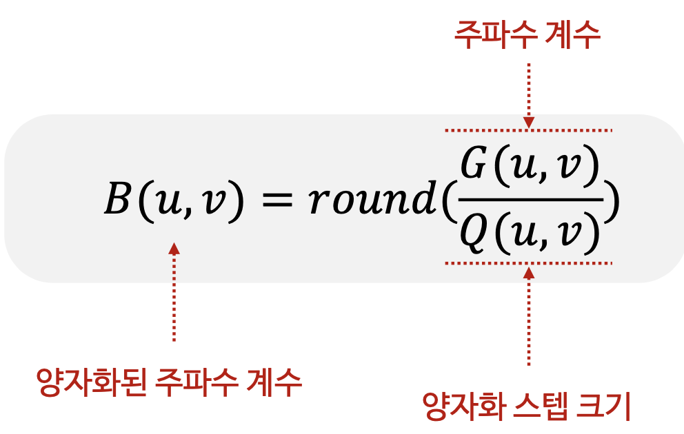 - 이미지 픽셀을 블록화 후 패턴(DCT 변환) 양자화