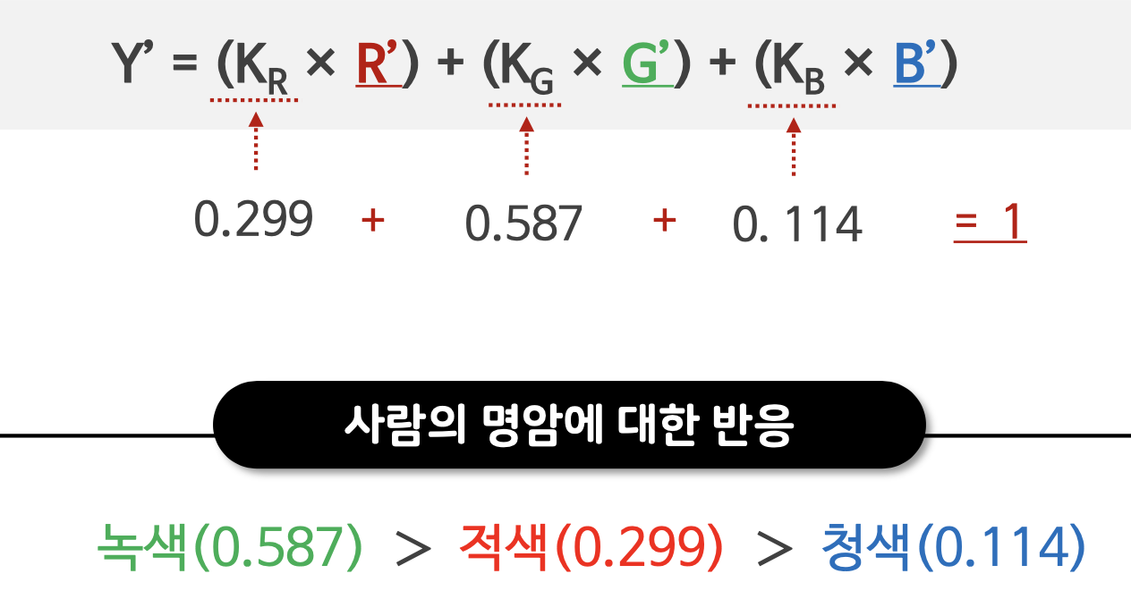 ✅ 사람의 눈은 색상보다 명암을 더 명확하게 인식한다.