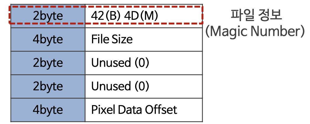 - Magic Number ⇒ 파일의 처음에 기록되는 파일 정보, 변하지 않는 상수라는 뜻