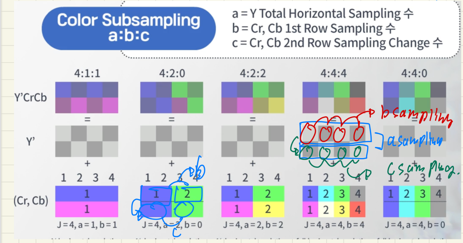 ⇒ 손실 압축을 위해 Color Down Sampling을 진행함 (Color Subsampling이라고도 함)