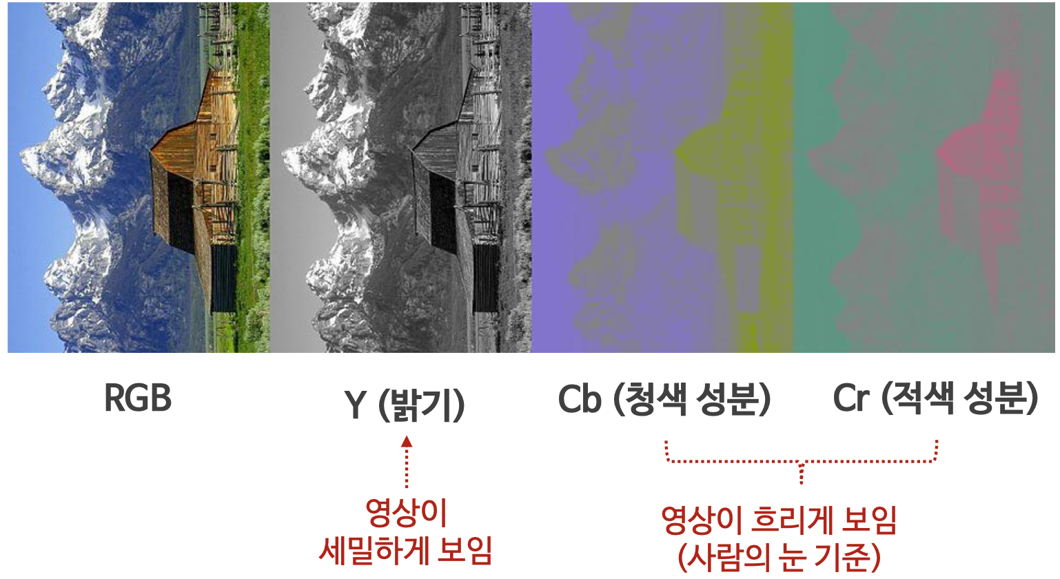 💡 Y: 밝기 정보, 그래도 유지 Cr, Cb: 사람이 색을 감지하는 원추 세포가 눈 중심을 제외하고는 별로 없어 일부 정보를 버려 손실 압축