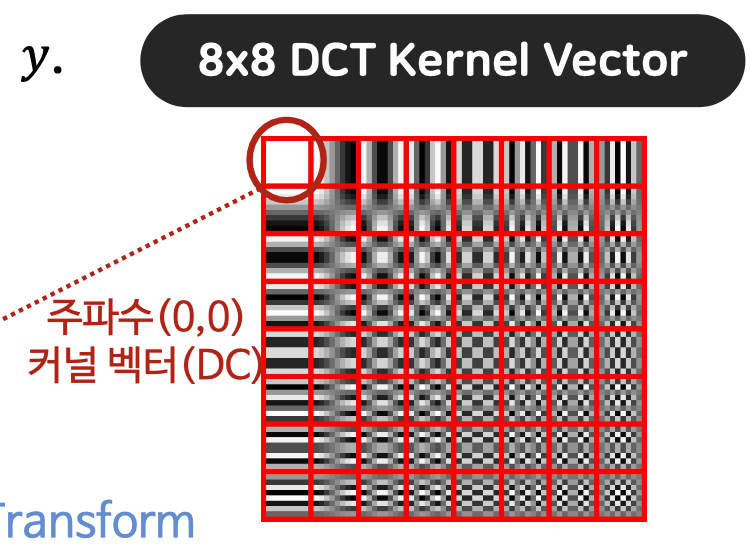 DCT 커널 벡터는 Orthogonal Vector이다, 서로간의 영향이 없다.