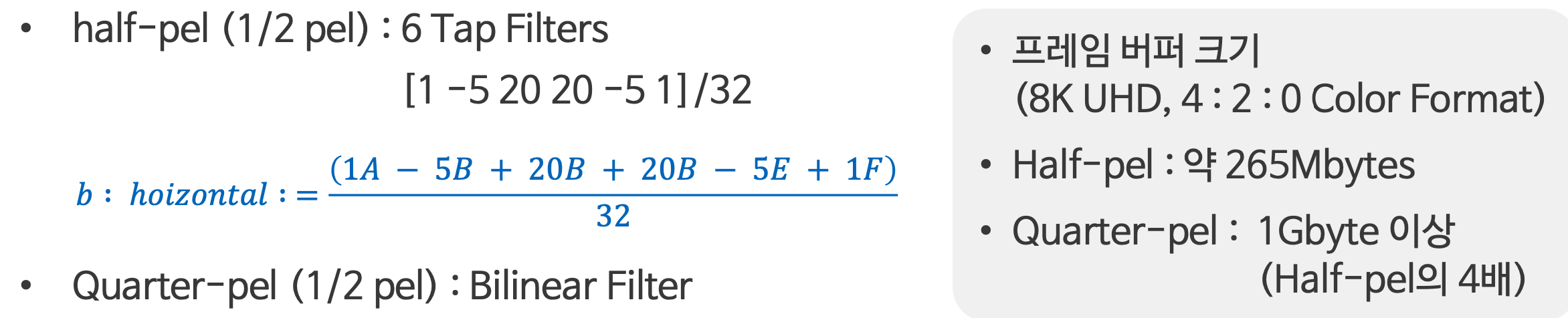 움직임 예측을 참조 프레임에서의 움직임 정밀도를 1/2픽셀로 높이는 기술