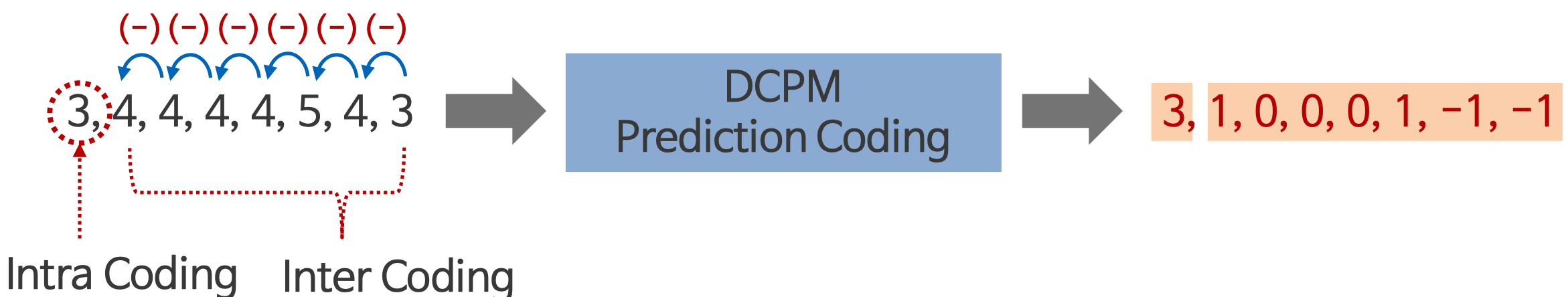 - 예측값으로 부호화 할 값 바로 앞의 값을 사용함