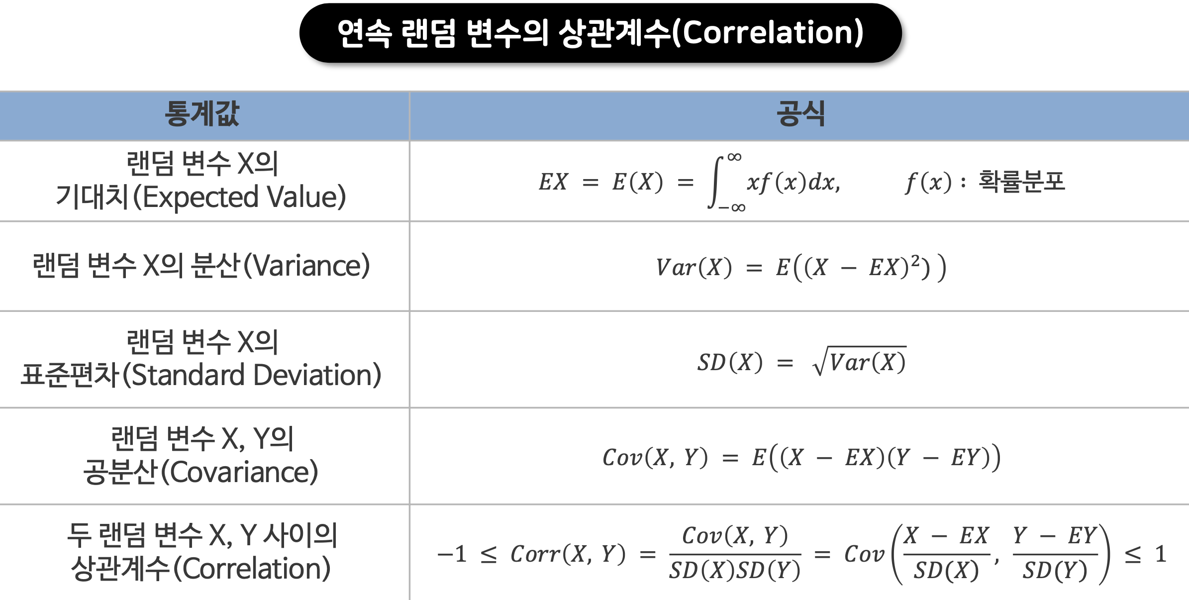 - 0에 가까울 수룩 관계가 없고, 절대값 1에 가까울수록 관계가 높음